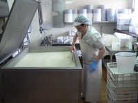 - Cuajado: cuando la leche ya está pasteurizada y ha llegado a 35º C añadimos fermento mesófilo, el fermento bífidus y el cuajo de cordero mientras agitamos. Cuando hemos mezclado bien dejamos la leche reposar 40-50 minutos.